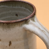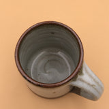 Un mug en grès et émail dolomite, texturé et costaud, fait main à la célèbre poterie Leach à St Yves, en Angleterre.