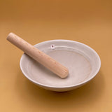 Ce mortier japonais en céramique (suribachi), accompagné de son pilon en bois de cyprès "hinoki" (surikogi), est un outil indispensable en cuisine pour broyer finement des herbes, des épices, du gingembre, du sésame, de l'ail...