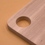 Le trou présent sur la planche est astucieux et permet d'accrocher la planche à un support mural ou d'y placer un oeuf si vous voulez vous servir de celle-ci comme d'un plateau repas / petit-déjeuner.