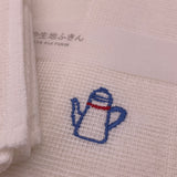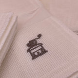 Ces essuie-touts japonais, appelés “Kaya Kiji Fukin”, sont le fruit du savoir-faire de l’une des dernières usines de moustiquaires du Japon. Chaque pièce est soigneusement tissée dans la préfecture de Nara puis brodée à la main à Wakayama, garantissant une qualité et un raffinement uniques.