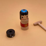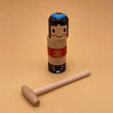 Le Daruma Otoshi est un grand classique des jeux japonais, ici revisité sous la forme d’une charmante poupée Kokeshi en bois peint.