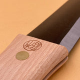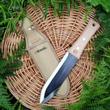 La lame en acier carbone est directement encastrée dans le manche, elle est donc super solide !